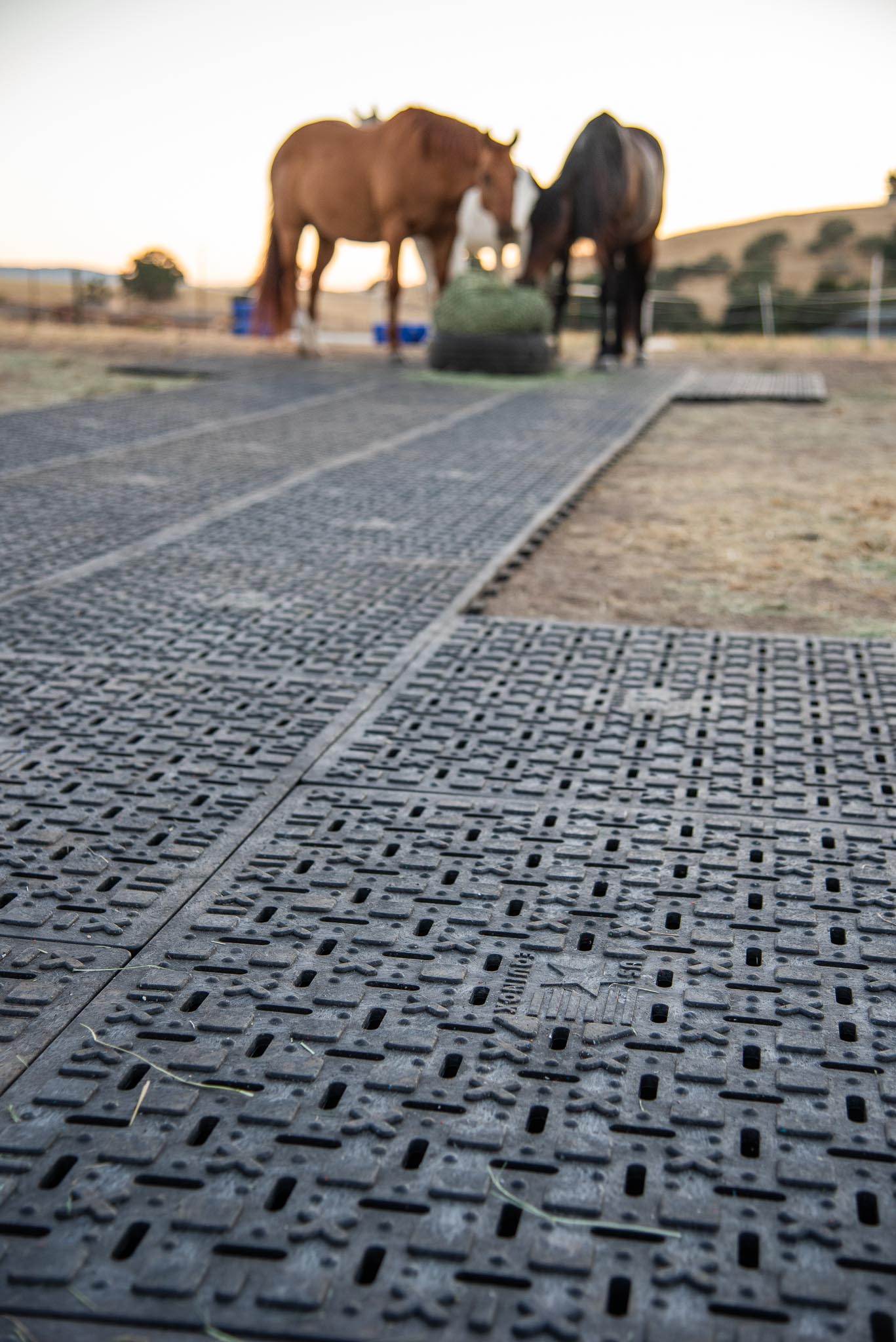 Our biggest problem was erosion around feeding stations, since the ground would become so dusty and literally blow away. In winter and spring, the areas around feeding stations was too compacted for growth. That would leave those areas dangerously slippery and muddy. These have solved both problems, giving the horses safe and comfortable areas to hangout and eat.Â